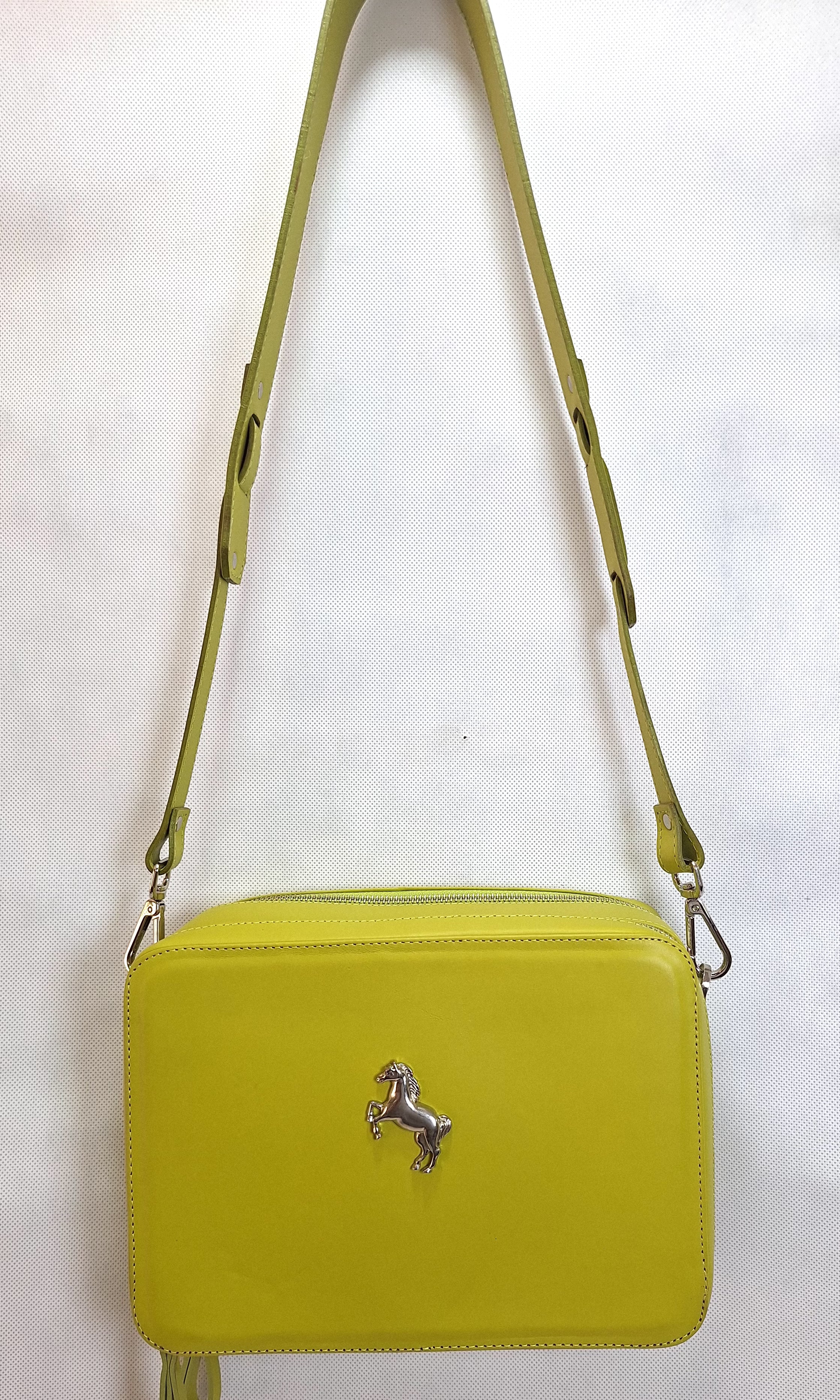 Cartera Med Skye en delicado color pistacho con textura croco premium.